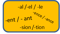 Includes -ence/-ance, -ar/-or/-er, -al/-el/-le, -sion/-tion, -able/-ible and -ent/-ant