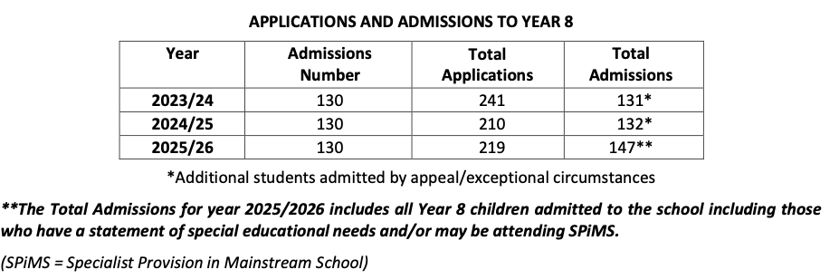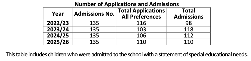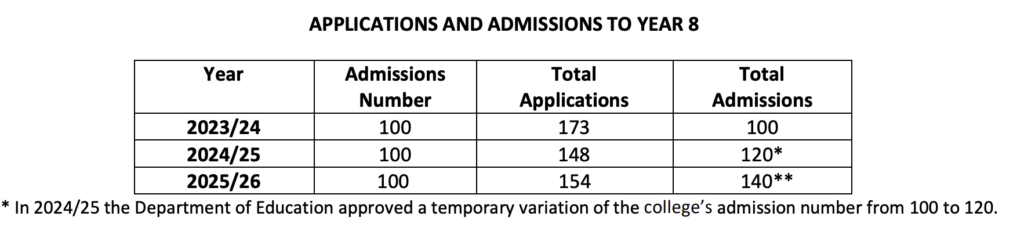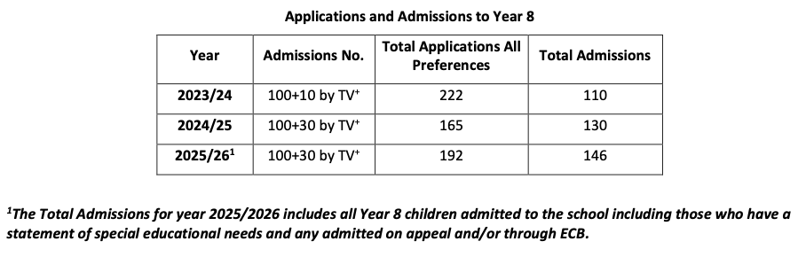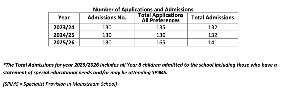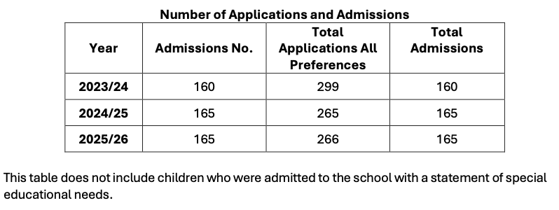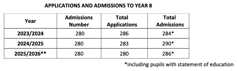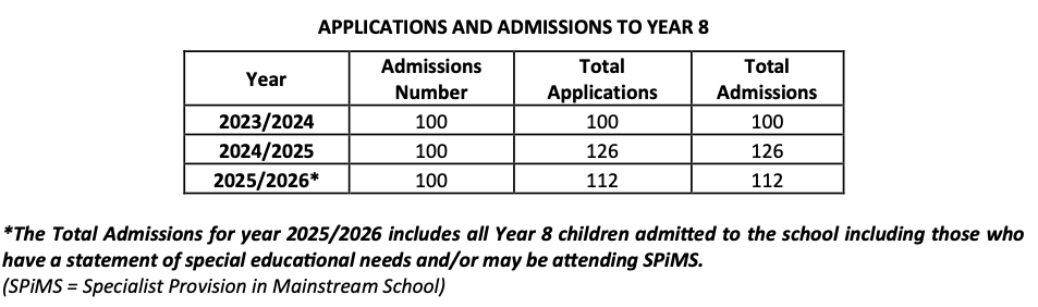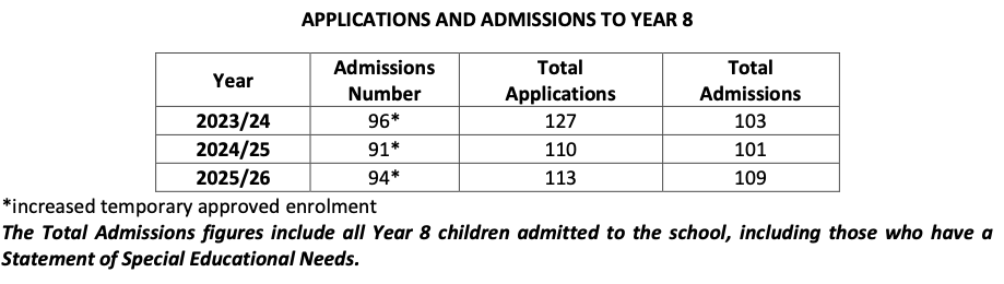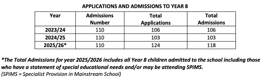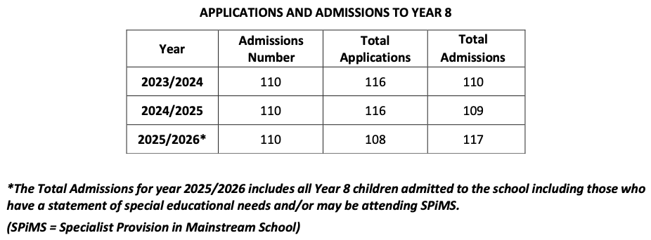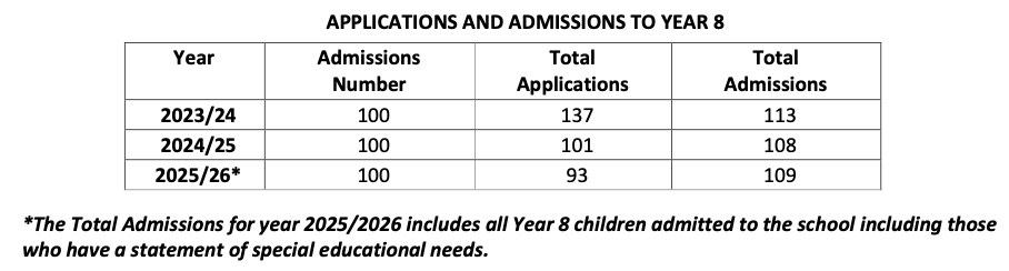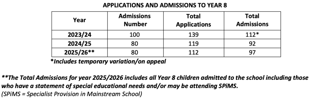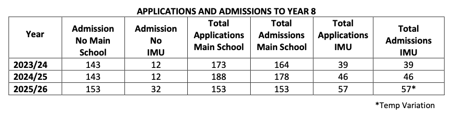 GRAMMAR INTAKE – Summary From Admission Criteria: