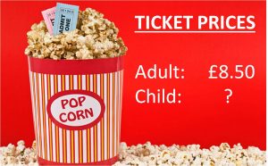 Lola and her dad go to the cinema. The tickets cost £14.75 for them both.